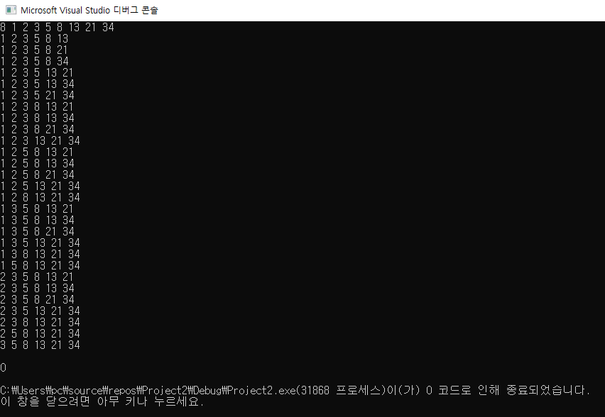 ---> 순서만 다른 숫자조합까지 출력하지 않도록 주의해야한다.