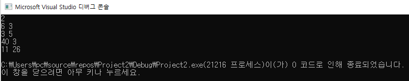 erase() 함수를 수행하면 다음 원소의 반복자를 반환하므로, erase() 후 K-1 만큼 반복자를 이동시킨 다음 반복자가 가리키는 원소를 erase() 하여 최종적으로 2명이 남게되면 결과를 출력하도록 구현하였다.