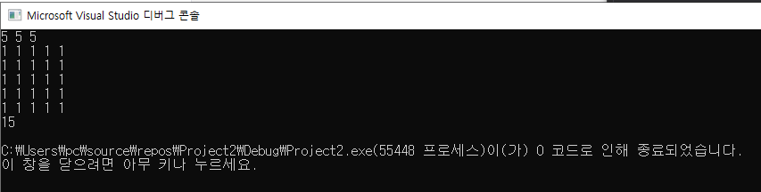 첫째 줄에 격자판 행의 수 N, 열의 수 M, 궁수의 공격 거리 제한 D가 주어진다. 둘째 줄부터 N개의 줄에는 격자판의 상태가 주어진다. 0은 빈 칸, 1은 적이 있는 칸이다.