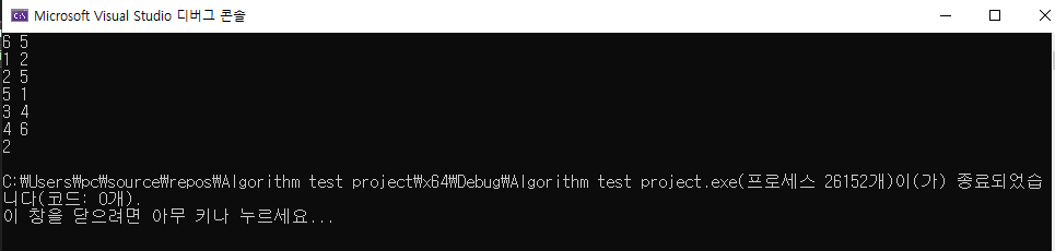 첫째 줄에 정점의 개수 N과 간선의 개수 M이 주어진다. (1 ≤ N ≤ 1,000, 0 ≤ M ≤ N×(N-1)/2) 둘째 줄부터 M개의 줄에 간선의 양 끝점 u와 v가 주어진다. (1 ≤ u, v ≤ N, u ≠ v) 같은 간선은 한 번만 주