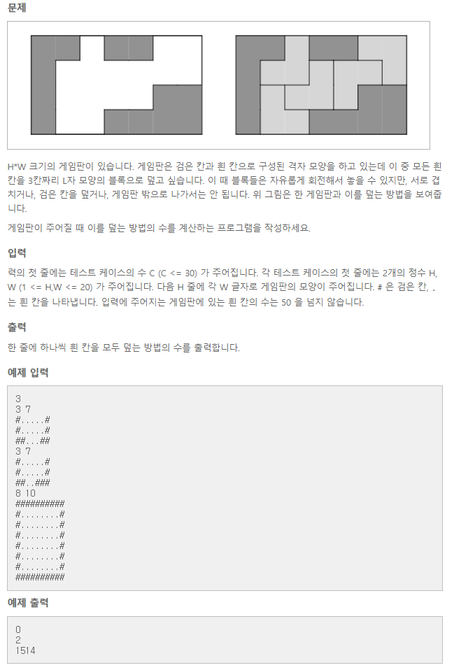 알고리즘 문제해결 전략 6.5 게임판 덮기(ID:BOARDCOVER)