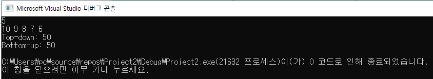 cout << "Bottom-up: "<< Bottomup(N) << endl;