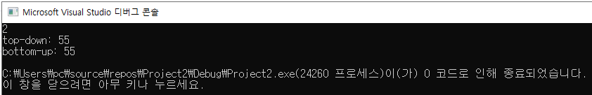 cout << "bottom-up: " << Bottomup(N) << endl;