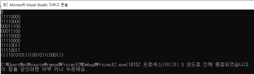 첫째 줄에는 영상의 크기를 나타내는 숫자 N 이 주어진다. N 은 언제나 2의 제곱수로 주어지며, 1≤N ≤64의 범위를 가진다. 두 번째 줄부터는 길이 N 의 문자열이 N 개 들어온다. 각 문자열은 0 또는 1의 숫자로 이루어져 있으며, 영상의 각 점들을 나타낸다.